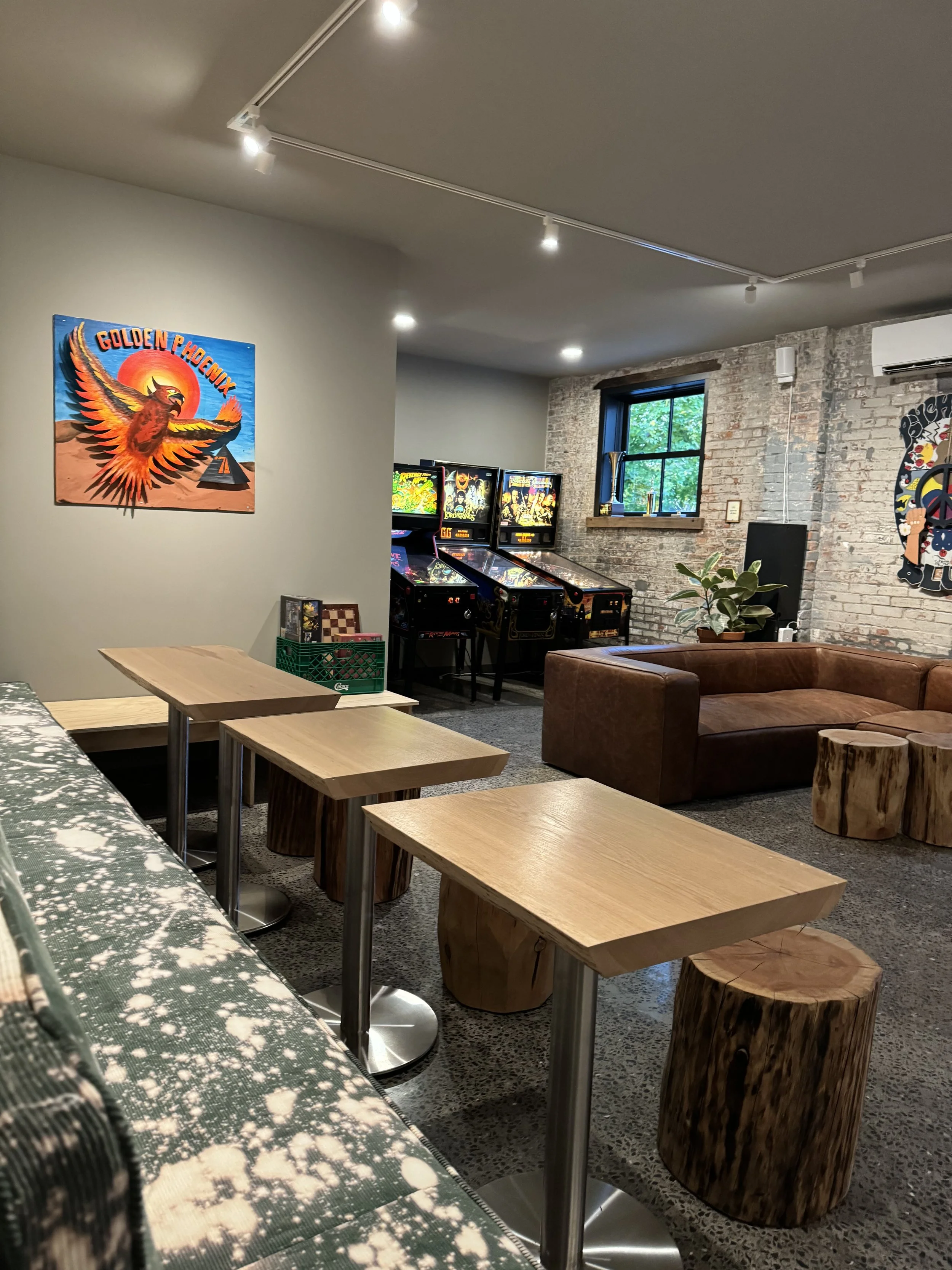The counselors room - kick back on the couch, play some pinball, or join us for karaoke, movie screenings and much more. The real cozy corner of Camp.
